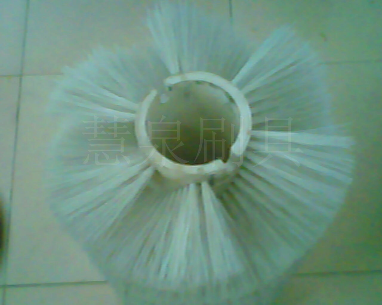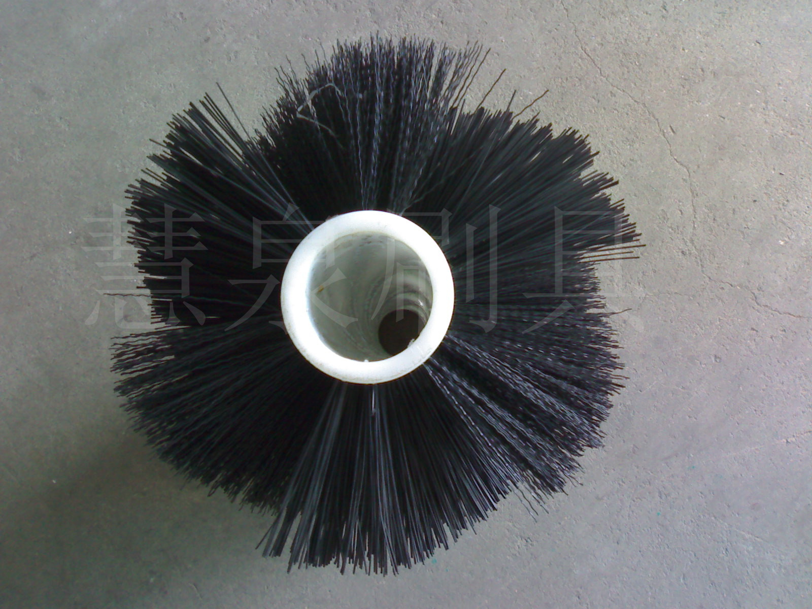 环卫刷(扫雪刷/扫路刷):在切割好的PP圆盘上成一定角度(∠135°)钻孔,再用切好的扁钢丝或PP刷丝、尼龙丝对折后串插即可,刷子装在市政环卫车用于清扫街道\清扫积雪等。