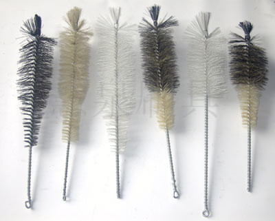 试管刷又叫管子刷,吸管刷.清孔刷,扭丝刷,管道刷等,是一种应用非常广泛的毛刷产品,主要是由铁丝(钢丝)作骨架,上面带有许多排列整齐,向外伸展的细刷丝构成。刷丝材料有尼龙丝,纤维毛,猪鬃,钢丝,铜丝,磨料丝等,分别有不同的使用范围。试管刷材料分为两个方面,一是中间绕制用的铁丝,有分铁丝和不锈钢丝两种;二是毛的材料,目前常用的有猪鬃,尼龙丝,钢丝,铜丝,磨料丝等,可以根据不同的使用环境来选择。